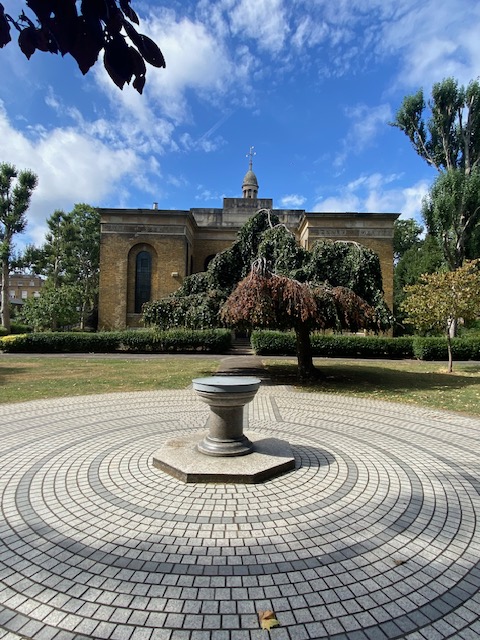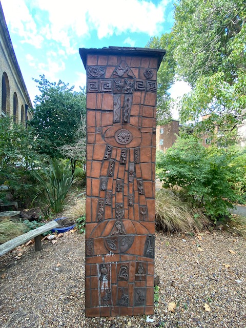 Father Horsley set up a small zoo in the rectory garden, which was nicknamed the ‘Monkey Park’. This could explain why there is a wooden sculpture of a chimp with the words “Dragen Malakai Henriques – Gone but never left”. Nearby is a Totem Pole which had been created by artists Claire Freer and Elin Solstad, together with children from a local primary school. Its design was inspired by the architecture and ideas of Sir John Soane.