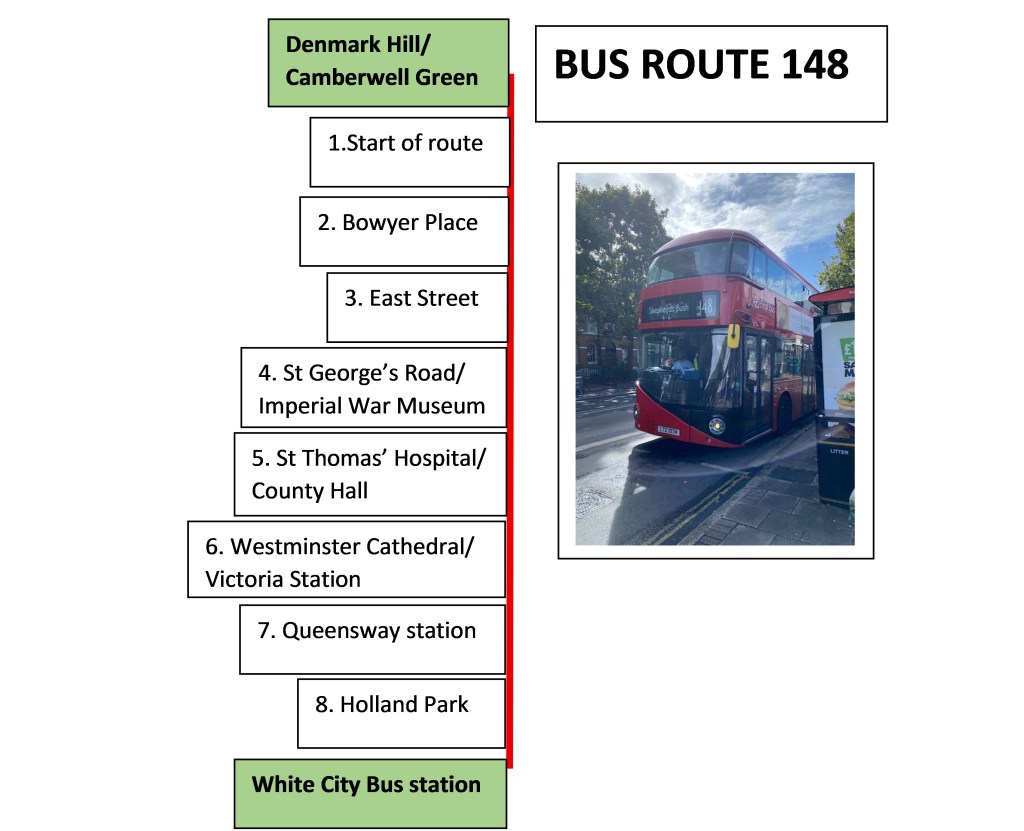 And now head back round to the Imperial War Museum. It’s also on other routes (40 and 59 to name but two) but this one stops virtually right outside. IWM was founded in 1917 when the War Cabinet approved a proposal to create a national war museum to record the events still taking place during the Great War. It was set up to collect and display material as a record of everyone’s experiences during that war – both civilian and military – and to commemorate the sacrifices of all sections of society.